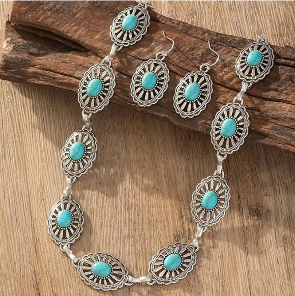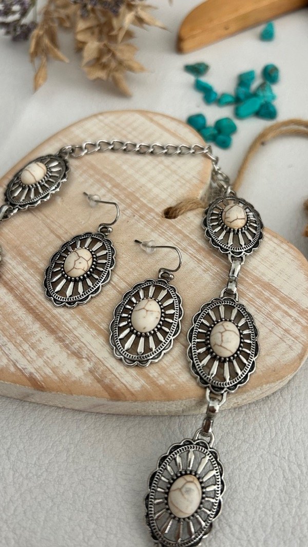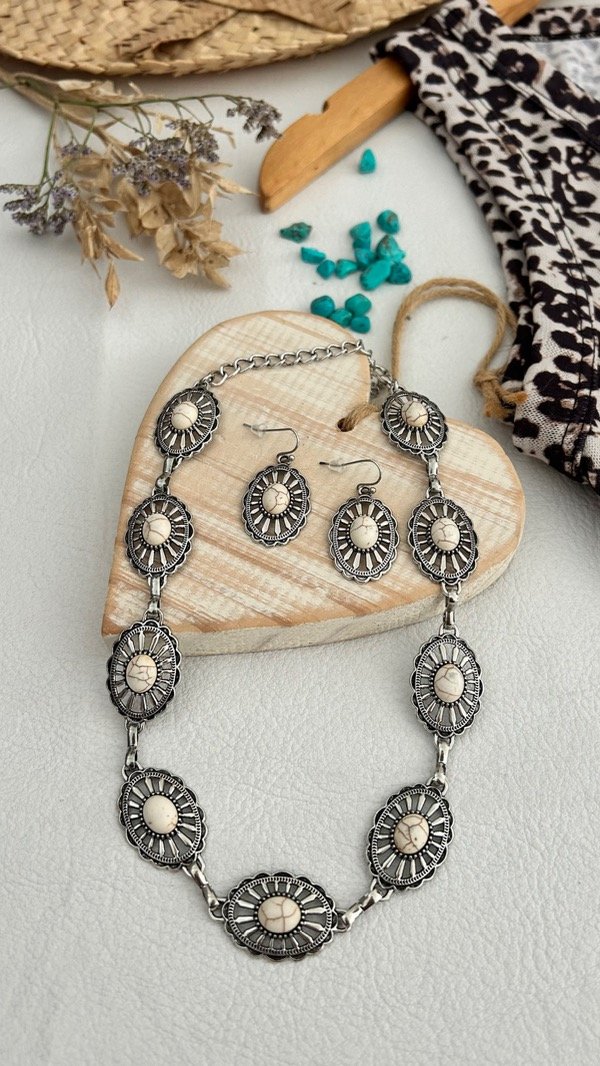COLLAR MEDALLONES LABRADOS CON PIEDRA SINTETICA + AROS