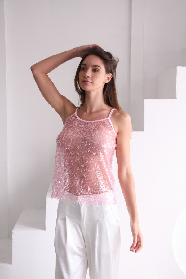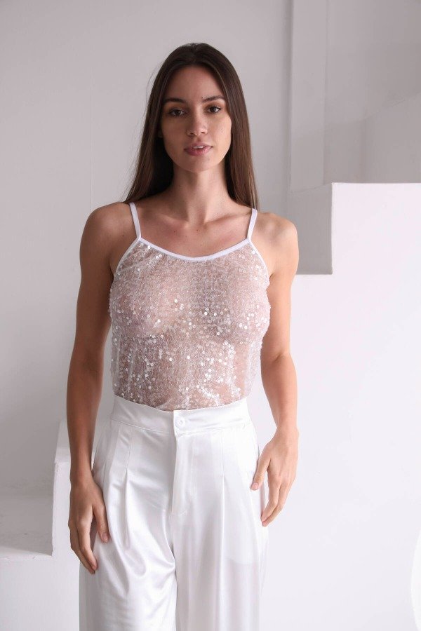 MUSCULOSA TUL INTEGRAMENTE BORDADA CON MINI LENTEJUELAS